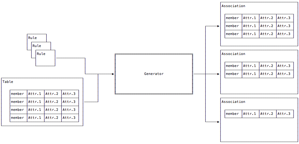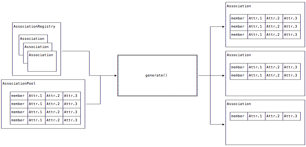 As introduced in the Association Overview, the figure above shows all the major players used in generating associations. Since this section will be describing the code design, the figure below is the overview but using the class names involved.